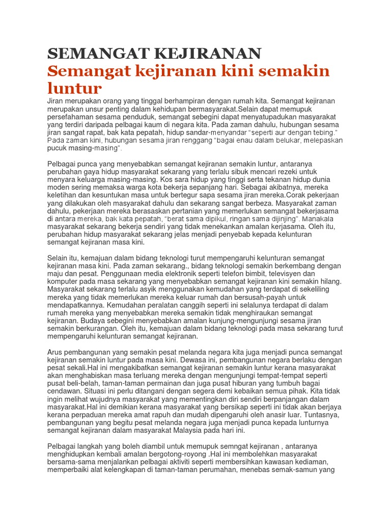Contoh Karangan Semangat Kejiranan Pdf