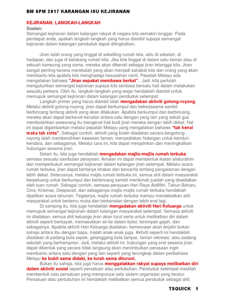 Bm Spm 2017 Karangan Isu Kejiranan Pdf